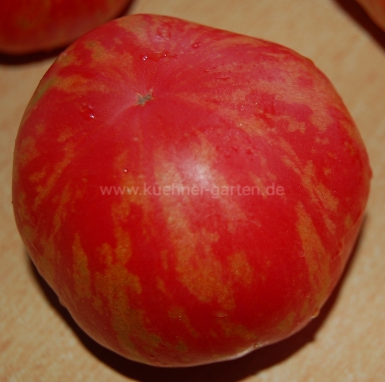 Sie ist eine dekorative, sehr weichschalige Tomate mit samtiger Haut. So ähnlich wie bei einem Pfirsich.