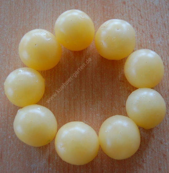 Früchte: cremeweiß, rund, sehr süß, fruchtiger Geschmack