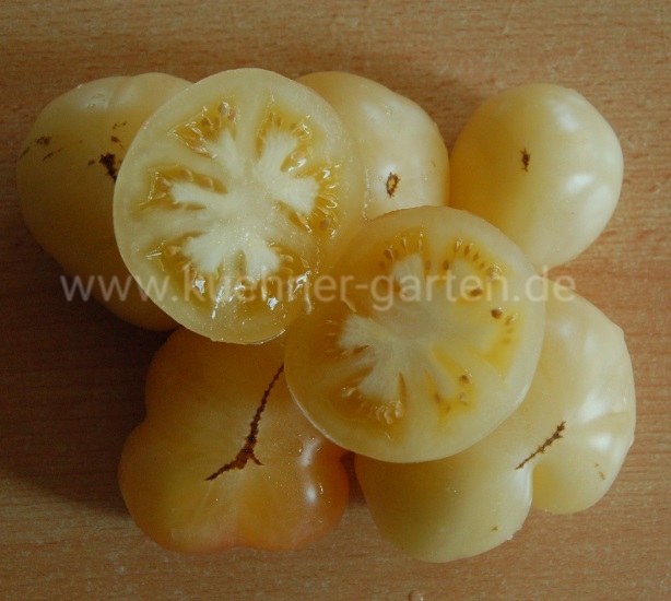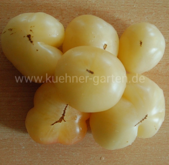 Früchte: сremeweiß, flachrund, süß, fruchtiger Geschmack, fest, lange lagerfähig