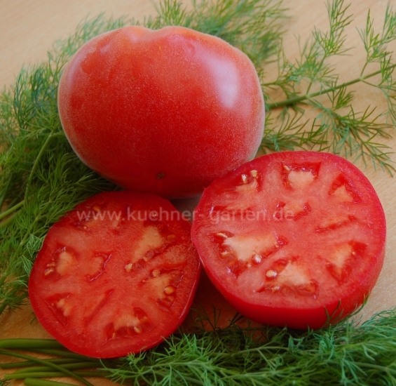 Sie ist eine weichschalige Tomate mit samtiger Haut. So ähnlich wie bei einem Pfirsich. Die Früchte sind nicht nur wunderschön, sondern auch lecker. Das Fruchtfleisch ist sehr süß und zartschmelzend.