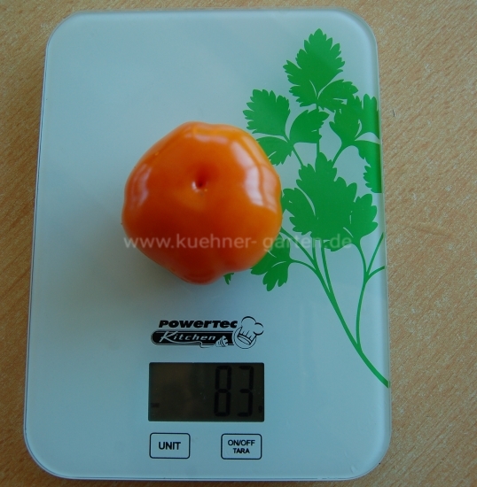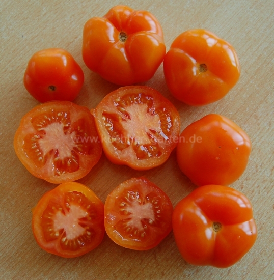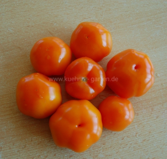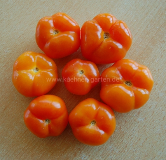 Früchte: orange, flachrund, gerippt, süß,sehr lecker, fest, aromatisch