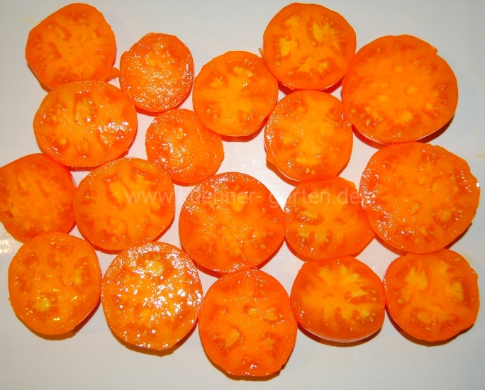 Früchte: gelborange, flachrund, sehr süß, fruchtiger Geschmack, fest, aromatisch