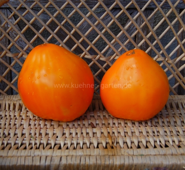 Die "Kozula 100" ist eine wunderschöne, ertragreiche Tomate von Anna Jankowski aus Polen. Die Sorte wurde von den Sorten "Ożarowski Złoty", "Beef Orange" und Orange Strawberry gekreuzt.