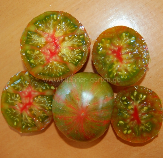Die "Cherokee Lime Stripes" ist eine wunderschöne, mehrfarbige Tomate von Bill Jeffers aus Evansville (Indiana, USA). Sie ist eine Weiterentwicklung der beliebten "Cherokee Lime". Wann und wo die "Cherokee Lime Stripes" offiziell eingeführt wurde, entzieht sich meiner Kenntnis.