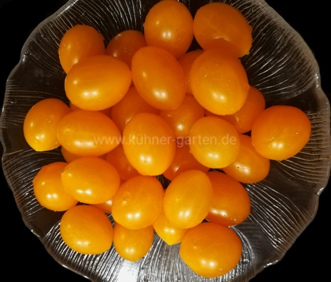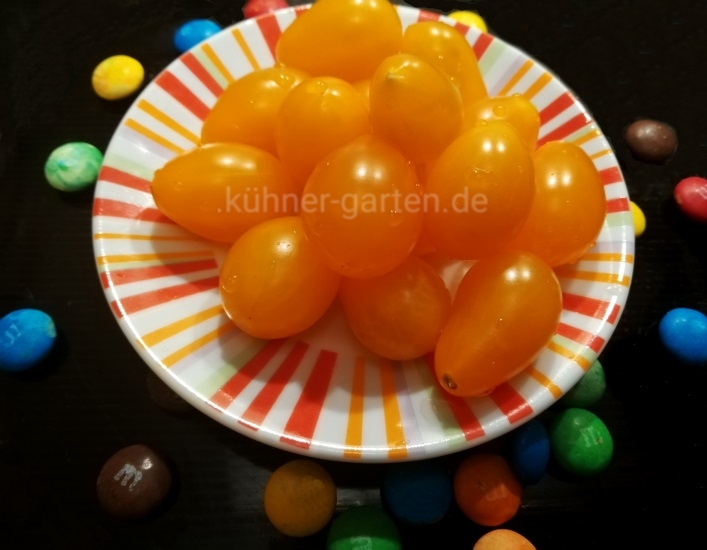 Pro Rispe sind bis 100 Früchte ganz normal. In der Regel werden die Tomaten oval und bis 20 g schwer.