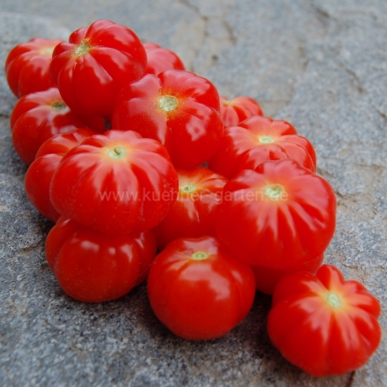 Früchte: rot, gerippt, sehr süß, fruchtiger Geschmack, saftig, aromatisch