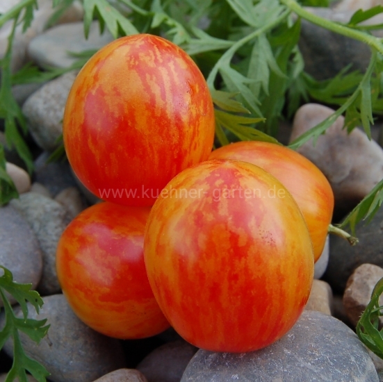 Sie gehört zur der wunderschönen "Artisan-Serie", bei der die langförmigen "Tiger" und die runden Sorten "Bumble Bee" heißen. Alle Tomaten dieser Serie sind spektakulär geflammt, marmoriert oder gestreift.
