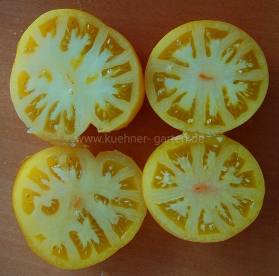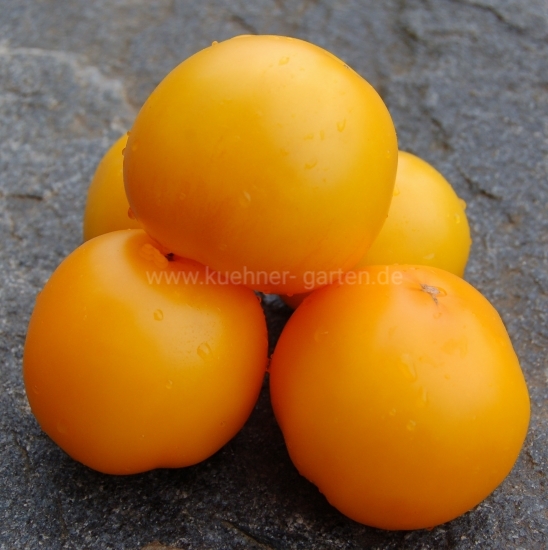 Früchte: gelb, flachrund, leicht gerippt, süß, aromatisch