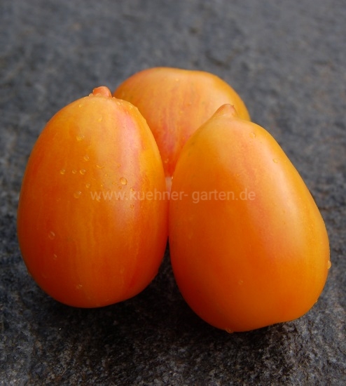 Diese Sorte ist durch ihre Fruchtform und die intensive Farbe besonders auffällig.