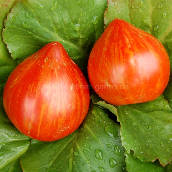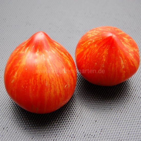 Früchte: mehrfarbig: rot mit goldenen Streifen, herzförmig, süß, aromatisch, fest, lange lagerfähig