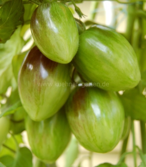 Sieht gut neben der Sorte Brads Atomic Grape aus. Die Früchte beider Sorten haben ähnliche Form und unterschiedliche Farbtöne.