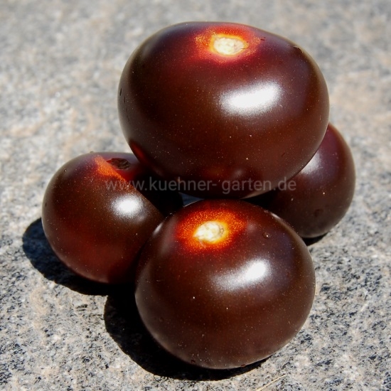 Schon im unreifen Zustand fasziniert sie mit ihrem schönen Farbspiel. Je nach Sonnenintensität färbt sich die der Sonne zugewandten Tomatenseite schwarz und die der Sonne abgewandte Tomatenseite rot.