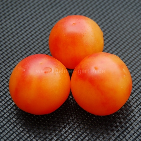 Früchte: orange-rosa-rot, rund, sehr süß, fruchtiger Geschmack