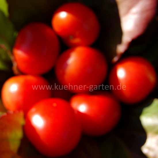 Früchte: rot, rund, wohlschmeckend, fest, aromatisch