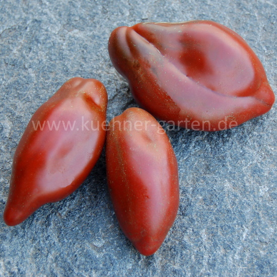 Die Tomaten sind festfleischig, schnittfest und samenarm, wodurch sie sich nicht nur hervorragend frisch im Salat machen, sondern auch für Soßen, zum Trocknen oder zum Einlegen bestens geeignet sind. Wer gerne optisch auffällige und geschmacklich ungewöhnliche Tomaten anbaut, wird an dieser Sorte viel Freude haben.