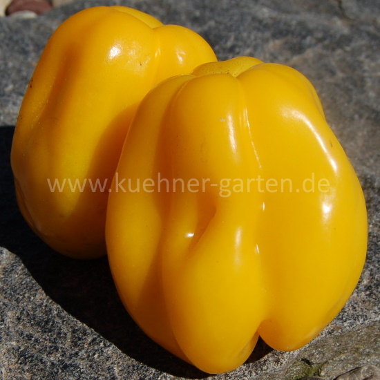 Die "Drapee" ist eine Tomate mit einer außergewöhnlichen Form und einer leuchtend gelben Farbe.
