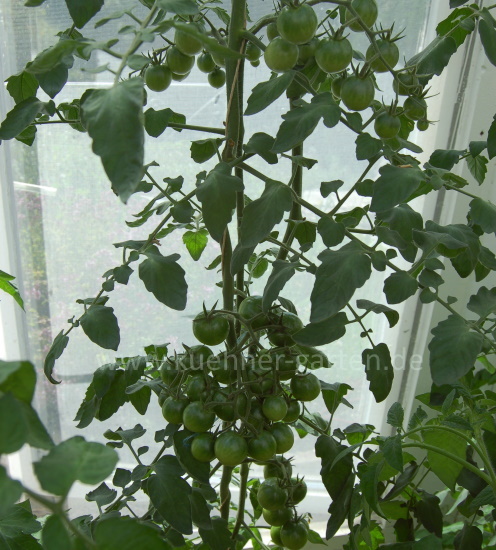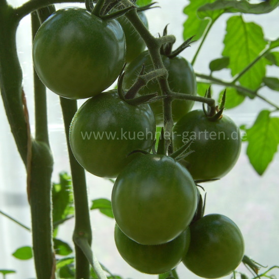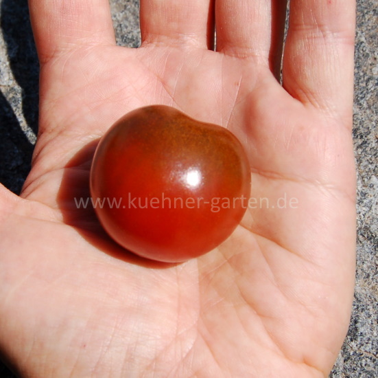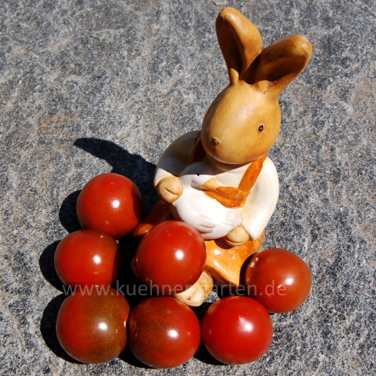 Diese Sorte unterscheidet sich deutlich von Black Cherry und anderen schokoladenfarbenen Cherrytomaten. Die Früchte sind deutlich fester, auch Fruchtfleisch und Geschmack sind anders. Besonders gefallen hat mir, dass die reifen Früchte relativ lange haltbar sind und eine Zeit lang gelagert werden können.